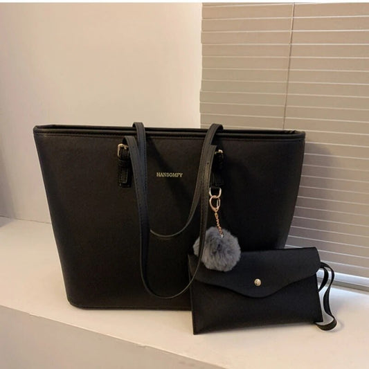 Fashion Bag Women's Leather Zimu Large Bag Fashion One Shoulder Bag, Simple Carrying Large Bag Hairball Hanging Decoration Small Bag, Holdin